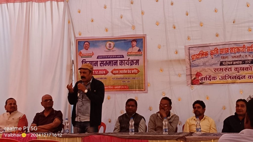 धमतरी 17 दिसम्बर 2024 को सुशासन के एक साल, छत्तीसगढ़ हुआ खुशहाल के तहत जिले में कार्यक्रमों का आयोजन किया जा रहा है। इसी कड़ी में आज प्राथमिक कृषि साख सहकारी समिति बगौद में प्राधिकृत अधिकारी कुलेश्वर चंद्राकर एवं प्रभारी समिति प्रबंधक जितेंद्र पाल एवं अतिथि द्वारा किसानों को साल एवं श्रीफल देकर का सम्मान किया गया। छत्तीसगढ़ में भारतीय जनता पार्टी सरकार के सफल एक वर्ष पूर्ण होने पर उपार्जन केंद्र बगौद में गया जहां भारत माता के तैल चित्र का पूजन कर कार्यक्रम का शुभारंभ किया गया तथा एक वर्ष में भाजपा सरकार द्वारा किए गये विकल कार्यों तथा किसान हित में लिये गये प्रयासों के बारे में बताया गया।
