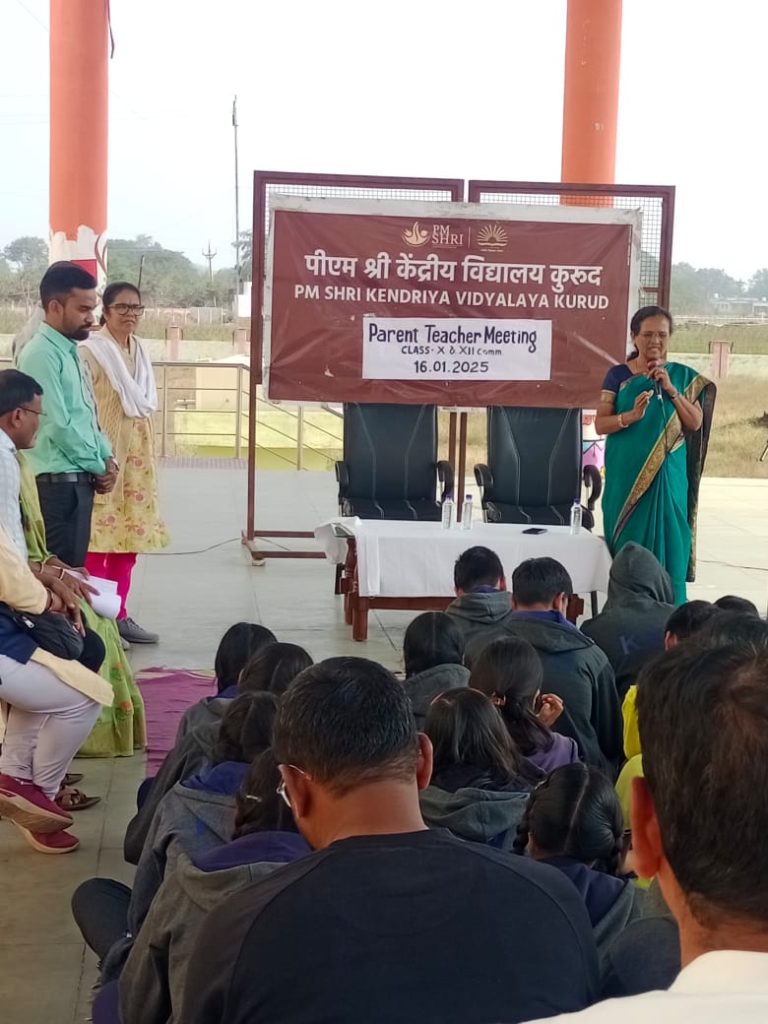 पी एम श्री केंद्रीय विद्यालय कुरुद में छात्रों के शैक्षणिक विकास और विद्यालय की प्रगति पर चर्चा हेतु पालक-शिक्षक बैठक (PTM) का आयोजन किया गया। बैठक में बड़ी संख्या में अभिभावकों ने भाग लिया और छात्रों की शैक्षणिक प्रगति पर चर्चा की गई।बैठक की अध्यक्षता विद्यालय की प्राचार्या ग्लोरिया मिंज ने की। अपने उद्बोधन में उन्होंने छात्रों के परीक्षा परिणामों का उल्लेख करते हुए उनकी मेहनत और प्रयासों की सराहना की। प्राचार्य ने अभिभावकों को यह भरोसा दिलाया कि विद्यालय छात्रों को आगामी बोर्ड परीक्षाओं के लिए पूरी तरह तैयार करने के लिए हरसंभव प्रयास कर रहा है। उन्होंने अभिभावकों से अनुरोध किया कि वे घर पर भी बच्चों को पढ़ाई का अनुकूल वातावरण प्रदान करें और उनके मानसिक स्वास्थ्य का ध्यान रखें।