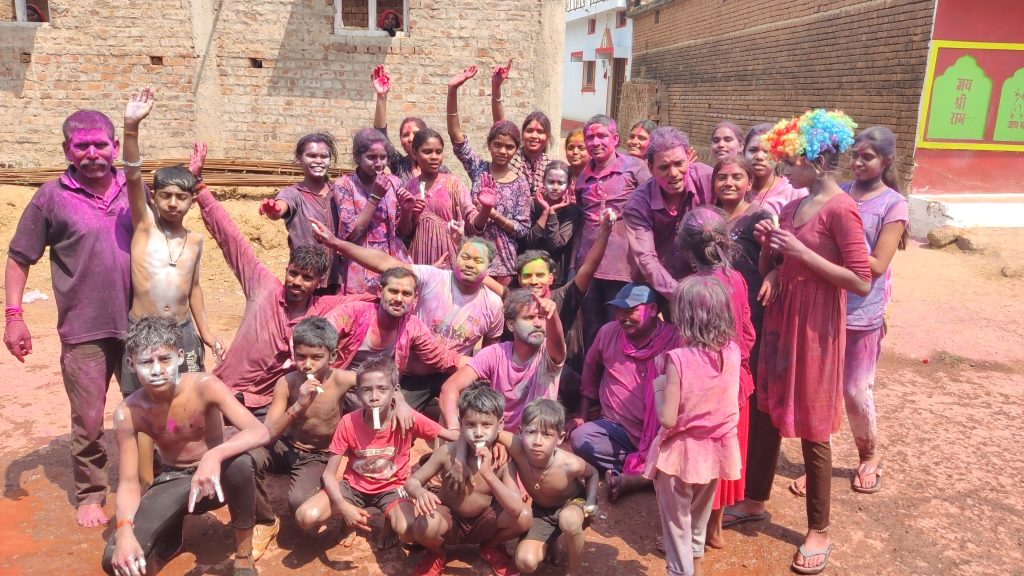इसी तरह गली मोहल्लों में युवा वर्ग गीत संगीत में थिरकते हुए त्यौहार का जश्न मनाने लगे। वहीं सरपंच के घर के पास और कुछ स्थानों पर पारंपरिक नगाड़ों की मनमोहक ध्वनि से सजे फाग गीत गाते हुए इस महापर्व की मस्ती में डूबने लगे। इस तरह पूरे नगर में दिनभर त्यौहार को लेकर उल्लास बना रहा।छोटे बच्चो ने अपनी चंचलता से इस उत्सव की खुशियों को दुगुना कर दिया वहीं आमजन समरसता और प्रेम के रंग में रंगकर भाईचारे और एकता का संदेश देने लगे। इस त्यौहार में सभी वर्ग के लोग काफी आनंद दिखाई दिए,,