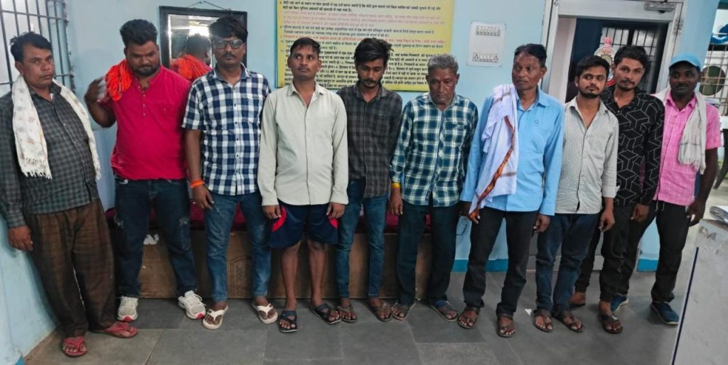 पुलिस अधीक्षक सूरज सिंग परिहार द्वारा सभी थाना प्रभारियों को जुआ,सट्टा, अवैध शराब के विरुद्ध सख्त कार्यवाही करने के निर्देश दिये गए हैं। इसी क्रम में धमतरी पुलिस थाना कुरूद को मुखबिर से सूचना मिली की ग्राम बोदाछापर खार में कुछ लोग 52 पत्ती ताश से हारजीत का दांव लगाकर जुआ खेल रहे है की सूचना पर थाना प्रभारी कुरूद द्वारा हमराह स्टॉफ के मुखबिर के बताये स्थान पर पहुंचकर घेराबंदी कर रेड कार्यवाही किया गया और जुआ खेलते 10 जुआरी रंगे हाथ पकडे गये।