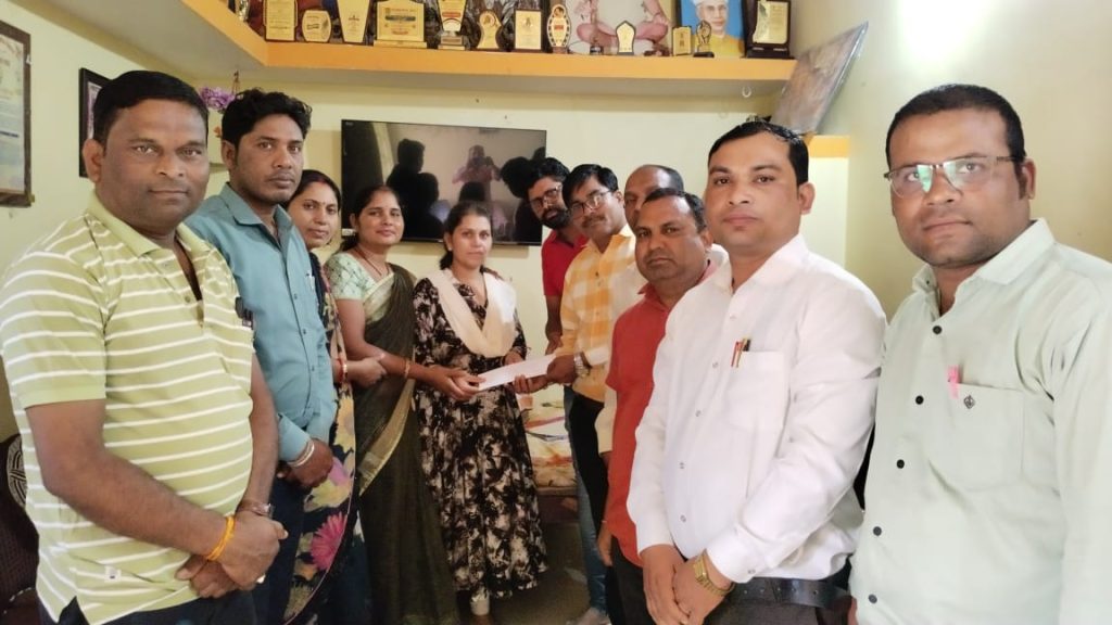 आज दिनांक 28/06/2025 को सहायक शिक्षक /समग्र शिक्षक फेडरेशन कुरूद द्वारा अपने दिवंगत सहायक शिक्षक स्व.टीकम साहू जो कि प्राथमिक शाला सिर्वे में कार्यरत थे,उनकी धर्मपत्नी रोहिणी साहू को ग्राम मोगरा पहुंचकर साथियों से एकत्रित संवेदना राशि प्रदान की। तथा संगठन द्वारा शोक संवेदना पुष्प योजना को आगे बढ़ाया।प्रेस विज्ञप्ति जारी करते हुए संगठन के ब्लॉक अध्यक्ष लुकेश राम साहू ने बताया कि हमारी यह योजना जब से संगठन अस्तित्व में आया है तब से निरंतर जारी है,और संगठन की कोशिश रहती है कि हम इस योजना के माध्यम से विषम परिस्थितियों में हमारे साथियों के साथ खड़ा रहकर उन्हें संबल प्रदान कर पाते है।साथ ही कहा कि विभाग की ओर से जो भी अन्य सुविधाएं प्राप्त होती है उनके लिए संगठन की ओर से विशेष प्रयास करेंगे जिससे उनके सभी लंबित देयक व स्वत्वों का शीघ्रता से भुगतान हो सके।संगठन के सदस्यों के प्रति आभार मानते हुए उन्होंने अपील की है कि इसी तरीके से आप सबके सहयोग से यह योजना निरंतर जारी रहनी चाहिए,और इसमें हम सबको अपनी सहभागिता सुनिश्चित करना चाहिए ताकि हम एक दूसरे के काम आ सके। इस अवसर पर रोहिणी साहू के साथ साथ उनके मामाजी मनोज कुमार साहू,फेडरेशन के प्रांतीय प्रवक्ता हुलेश चंद्राकर, कोषाध्यक्ष फालेश्वर कुर्रे,सहसचिव शंकर दास मानिकपुरी,महिला प्रकोष्ठ सदस्य शिप्रा कन्नौजे, किरण साहू,मंजुलता साहू,वरिष्ठ सदस्य देवनाथ साहू , थानेश्वर कश्यप,ख़ुमेश्वर साहू, कामेश्वर साहू, खेमचंद देशलहरे एवं परिजन उपस्थित थे।