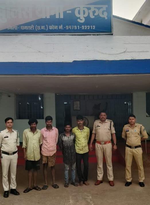 चारों आरोपियों के विरुद्ध थाना कुरूद में अपराध क्रमांक 179/25 के तहत धारा 331(4), 305, 3(5) बीएनएस.एवं संगठित अपराध की धारा 111 बीएनएस.के तहत अपराध पंजीबद्ध कर विधिवत गिरफ्तारी के उपरांत न्यायिक रिमांड पर जेल भेजा गया है। अन्य फरार आरोपियों की पतासाजी हेतु पुलिस की टीमें लगातार प्रयासरत हैं।इस कार्यवाही में थाना प्रभारी कुरूद निरीक्षक राजेश जगत, सउनि. कमिल चंद सोरी, प्रआर. जयप्रकाश कन्नौजे, आरक्षक गोपाल चंद्राकर, महेश साहू, शैलेन्द्र बंजारे एवं सैनिक कुबेर साहू का विशेष योगदान रहा।