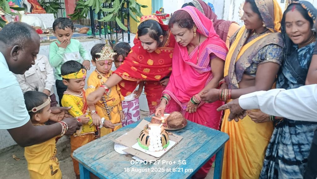 ग्राम फुसेरा में समाजिक समरसता के साथ बहुत ही हर्षोल्लास के साथ कृष्ण जन्मोत्सव मनाया गया। गांव के छोटे-छोटे बाल गोपाल को कन्हैया का रुप धारण कर पूजा अर्चना के साथ सभी पर पुष्प वर्षा आयोजन को गति प्रदान किया गया। साथ ही विविध कार्यक्रम मटका फोड़ रस्सा खिंच कुर्सी दौड़ बच्चों और महिलाओं के मनोरंजक गेम दही लूट के आनंद के साथ ग्राम वासी भाव विभोर हो उठें। मुख्य अतिथि के रूप में उपस्थित सरपंच जमुना देवी ने वक्तव्य में कहा हमारा देश संस्कार धानी है सदियों से चली आ रही परंपराओं को कायम रखना व जमीनी स्तर पर सामाजिक समरसता के साथ हर छोटी-बड़ी पर्व पर ग्राम वासी एकजुटता का परिचय देते हुए कार्य किया जाएं तो ग्राम को प्रगतिशील से प्रतिष्ठित बनाने की कल्पना वास्तविकता में साकार हो सकती है सरपंच प्रतिनिधि राजेंद्र कुमार साहू ने कहा समाजिक सनातनी धर्म पर्व त्यौहार ग्रामवासियों को एक सूत्र में बांधने का काम करता है स्थानीय लोगों के साथ आत्मीय लगाव बढ़ता है समुदाय के हर उम्र वर्ग चाहे वो बच्चा हो, महिला पुरुष हो या फिर बुजुर्ग ग्राम विकास से जुड़ते चले जाते हैं कार्यक्रम को सफल बनाने के लिए ग्रामीण अध्यक्ष करण लाल बंजारे,पूजा साहू ,डां लोकेश कुमार, रमाकांत साहू ,शिक्षक योगेन्द्र कुमार साहू ,डोमार सिंह साहू ढालचंद नोहर उपसरपंच शेषपाल वर्मा नरेंद्र नेताम गणेश भीमो बंसी लहरी विष्णु यादव भुलऊ मारकंडे उमेश यादव नन्द यादव मधुसूदन वर्मा डॉ धर्मेंद्र भिमो नेमीचंद लहरी नरेन्द्र वर्मा कंचननेताम प्रियंका साहू गोपेश्वर साहू भावना साहू तिजिया यादव वंदना वर्मा निर्मला वर्मा शकुन भिमो राजेश कुमार भोजराम लहरी भुलऊराम चन्द्रशेखर समस्त ग्राम वासी की उपस्थिति रही। कार्यक्रम का आयोजन ग्राम पंचायत फुसेरा व ग्रामवासी के सहयोग से सम्पन्न हुआ