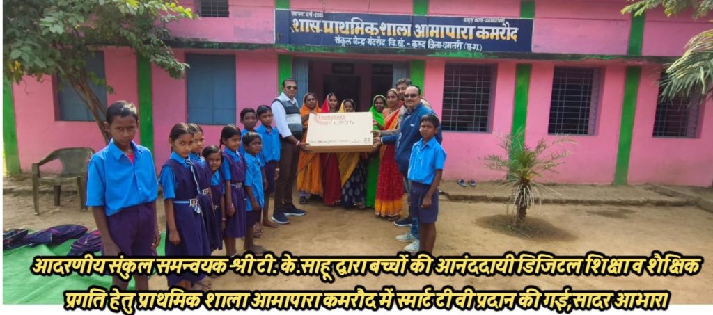 मंदरौद संकुल के अंतर्गत बच्चों की शैक्षिक प्रगति एवं रुचिपूर्ण शिक्षण को बढ़ावा देने के उद्देश्य से संकुल समन्वयक टाकेश्वर साहू द्वारा प्राथमिक शाला आमापारा, कमरौद को उपयोगी शैक्षिक सामग्री के अंतर्गत स्मार्ट टीवी प्रदान की गई। स्मार्ट टीवी के माध्यम से डिजिटल कंटेंट, शैक्षिक वीडियो, ई-लर्निंग सामग्री एवं रोचक ऑडियो-विजुअल पाठों के द्वारा विद्यार्थियों में सीखने की रुचि बढ़ेगी तथा जटिल विषयों को सरल व प्रभावी ढंग से समझाने में शिक्षकों को सुविधा मिलेगी। यह सामग्री शाला प्रबंधन समिति की गरिमामयी उपस्थिति में संस्था प्रमुख सैय्यद इनायत अली को ससम्मान सौंपी गई।इस अवसर पर शाला प्रबंधन समिति की अध्यक्ष डामिन साहू, सदस्य तेजस्विनी यादव, भूतपूर्व उपाध्यक्ष शांति ध्रुव, नूतन चंद्राकर, ममता चंद्राकर, राज नवरंगे सहित शिक्षकगण लुकेश राम साहू, डिगेंद्र कुमार सेन एवं नोहर साहू उपस्थित रहे।
