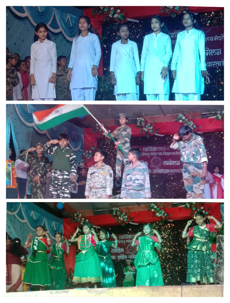 मुख्य अतिथि जैन जी ने सरस्वती शिशु मंदिर को समाज के द्वारा दिये अनुदान से चलने वाला भारतीय संस्कृति पर आधारित शिक्षा देने के साथ पांच आधारभूत विषय शारीरिक, संस्कृत, संगीत, योग, नैतिक एवं आध्यात्मिक शिक्षा के माध्यम से भैय्या बहिनों के सर्वांगीण विकास जिसमें अन्नमयकोष, प्राणमय कोष, मनोमय कोष, विज्ञानमय कोष व आनंदमन कोष की विशेष व्याख्या किया व लोगों से आह्वान किया कि इस विद्यालय को समाज के वरिष्ठ जन और भविष्य में अच्छा से पोषित करे। फिर विद्यालय के 376 प्रतिभागी भैय्या बहिनों ने 40 विधाओं पर आकर्षक सांस्कृतिक कार्यक्रम प्रस्तुत किये जिसमें देश भक्ति गीत, छत्तीसगढ़ की पारंपरिक गीत, बस्तरिया व सरगुजिया नृत्य, पर्यावरण तथा नशामुक्ति प्रहसन, बालकृष्ण द्वारा पुतना वध, योग व्यायाम सूर्य-नमस्कार का समायोजन कार्यक्रम की विशेष प्रस्तुति रही। कार्यक्रम में मुख्य रूप से भारत साहू, बोधी निषाद, युवराज कंवर, शेखन पटेल, मदन साहू, नीलमणि, देवाराम, अनमोल चंद्राकर, ईतवारी निर्मलकर, गणेश निर्मलकर, रोहित निषाद, शुभम टण्डन , भुलेश्वरी, पोमिन साहू, तेजबती साहू,परेमू राम , गोविन्द निषाद,गेमिन ध्रुव, भामा पटेल, जामवंती, सीमा, ममता ,मानसी, सुनीता, पदमनी,डामिन वर्मा, श्री खुबलाल, अभिताप वर्मा योगेंद्र साहू, मोहन लाल, उर्वशी, चंचल, मीरा, पोपेश्वर, गजेन्द्र, फग्गुराम एवं ग्राम से व पोषक ग्राम से हजारों की संख्या में दर्शक दीर्घा देर रात तक भैय्या बहिनों के कार्यक्रम का लुफ्त उठाते रहे। कार्यक्रम का संचालन बाल भारती सचिव बहन लतिका निषाद व कोमल साहू तथा विद्यालय के प्रधानाचार्य टीकाराम साहू ने किया। कार्यक्रम में आकर्षक वेशभूषा ने सभी प्रतिभागियों की निराली छटा देखने को मिला।